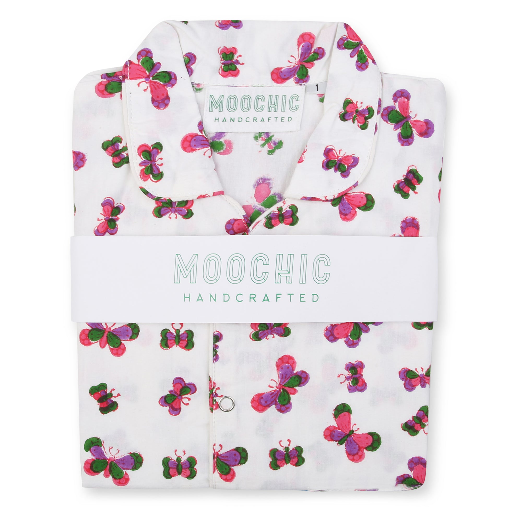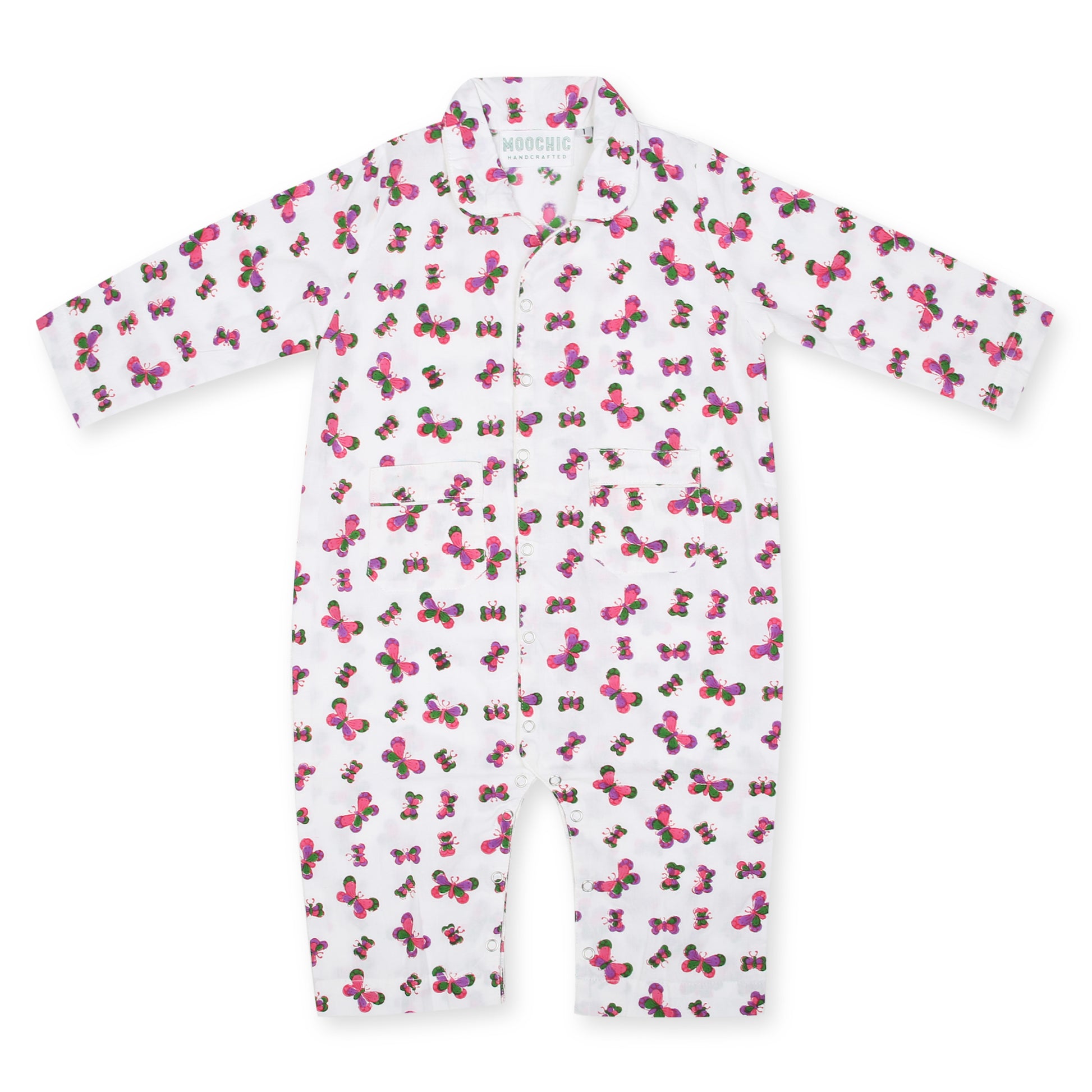 Gorgeous onesie hand printed with a pink, purple and green butterfly block design. Popper fastening for easy changing.