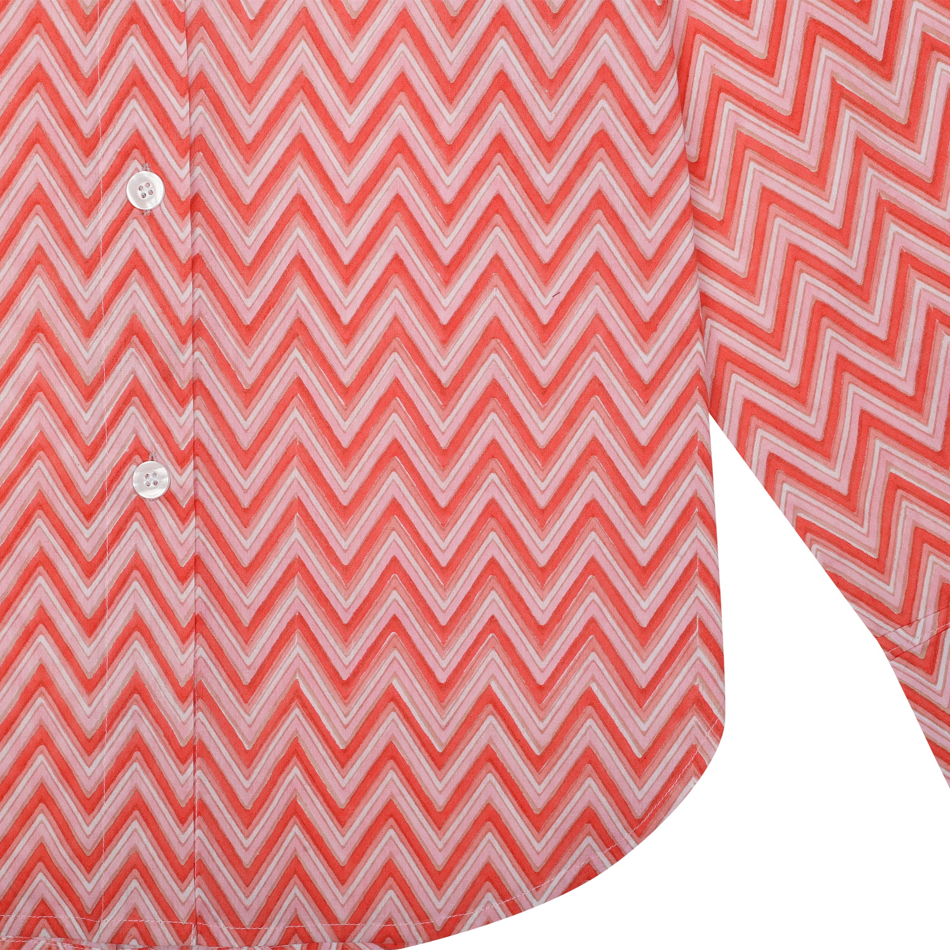Gorgeous short and shirt co-ord set in a vibrant orange and pink hand block zig zag print.